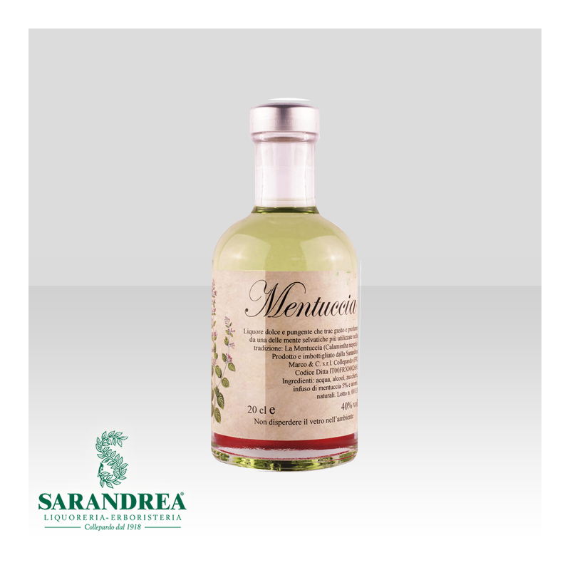 Liquore a base di infuso di Mentuccia ( Calamintha nepeta) con rametti in infusione. Questo liquore così particolare ed unico rappresenta